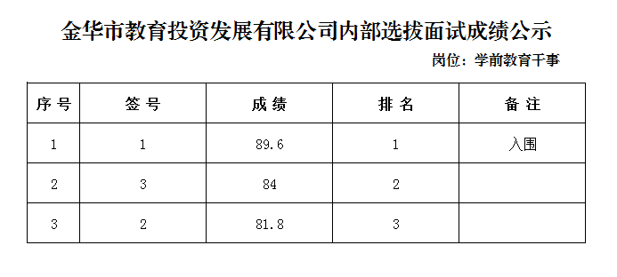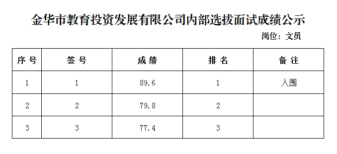 金華市教育投資發(fā)展有限公司內(nèi)部公開選拔工作人員成績公示